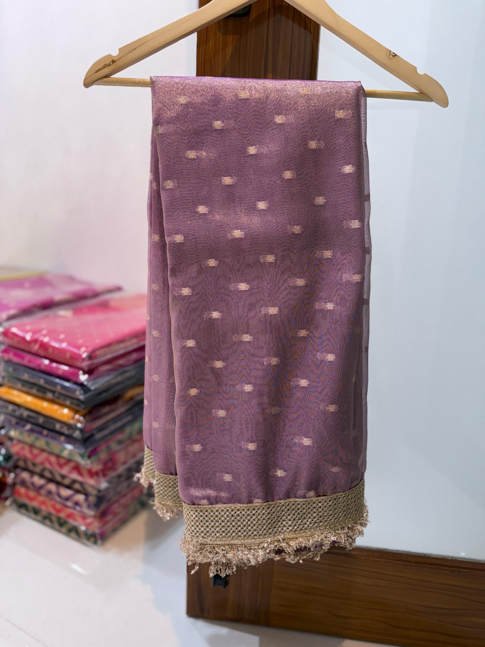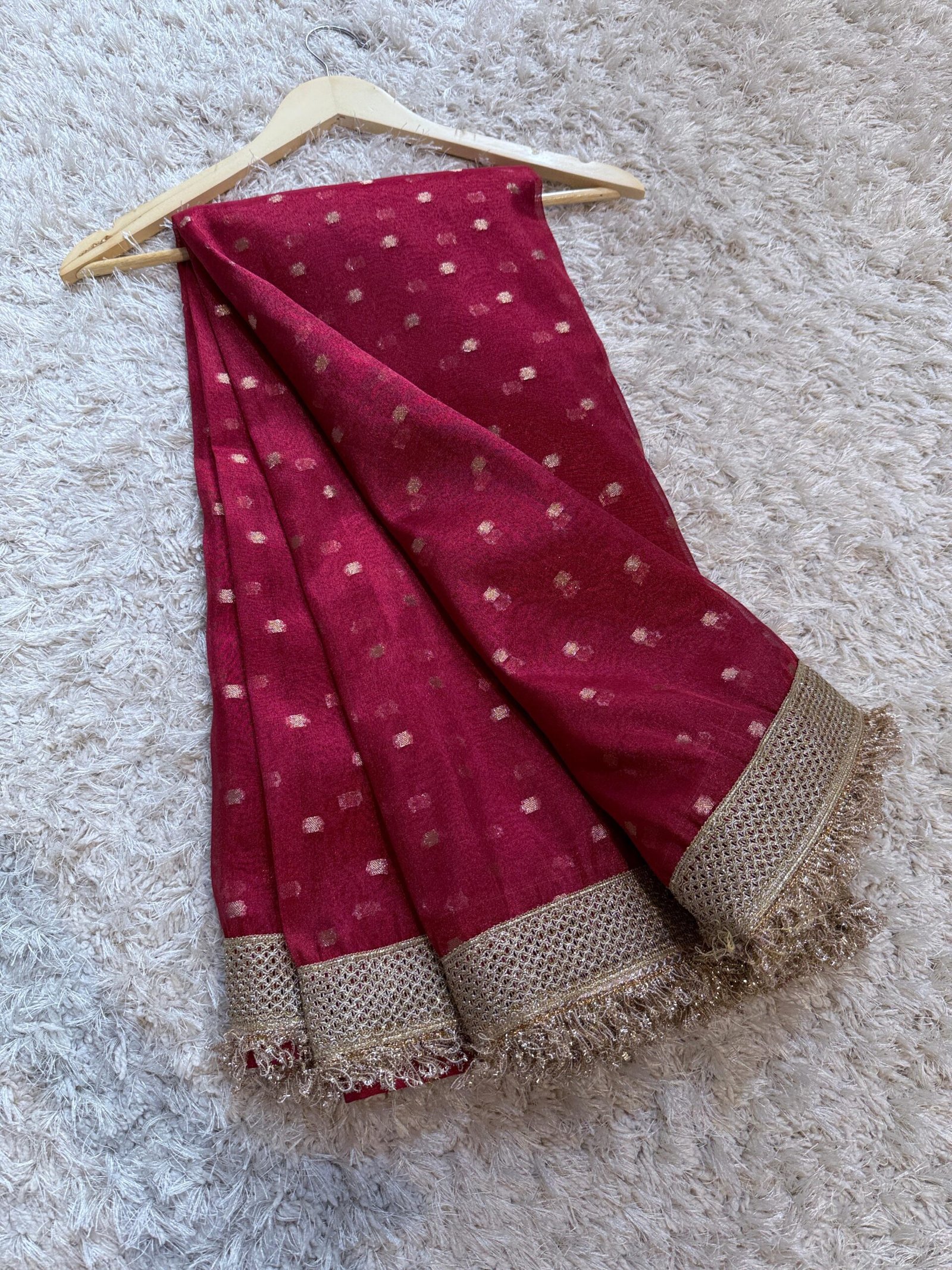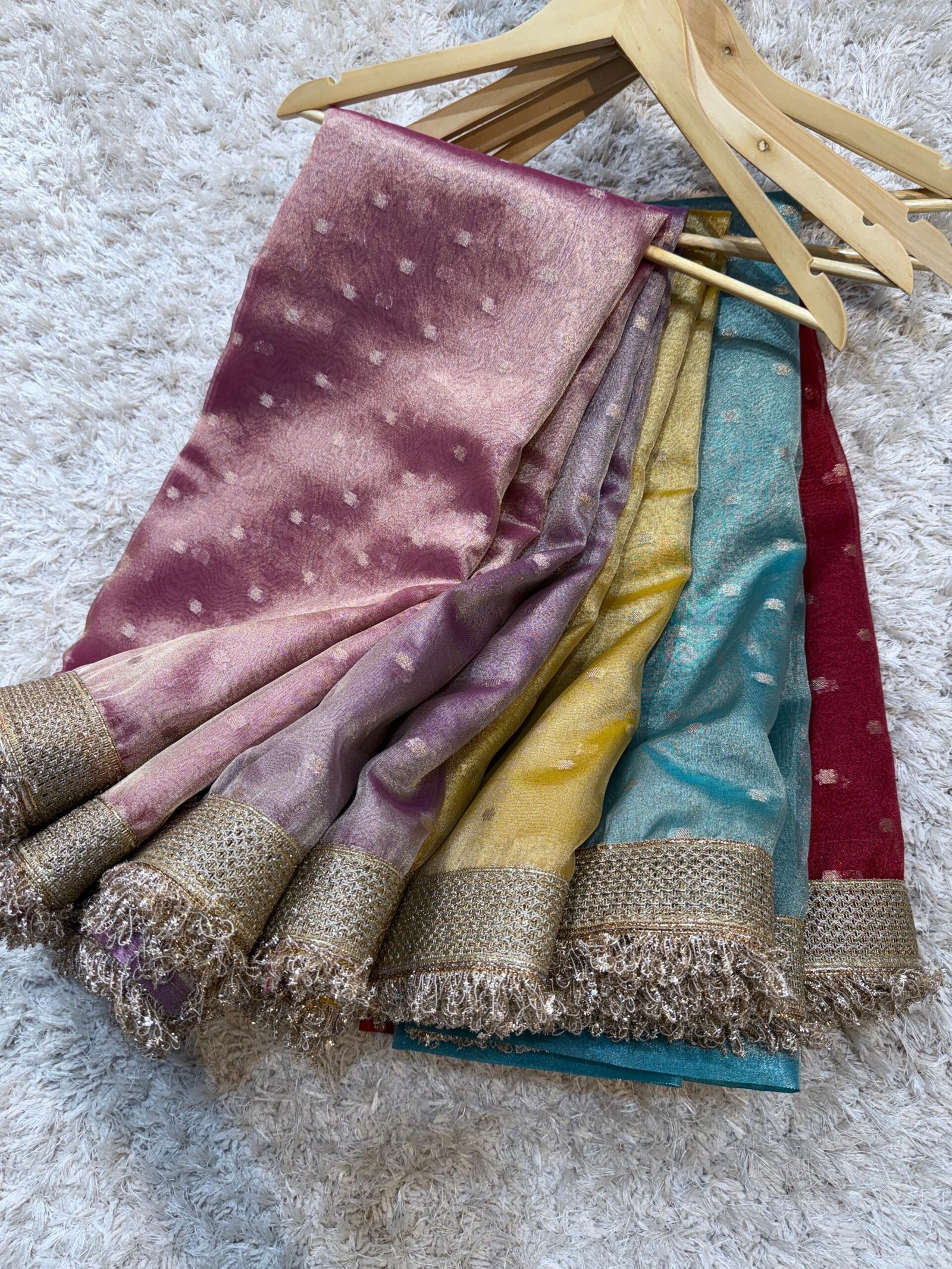 Banarasi Tissue Silk Saree with Broad Shiny lace Work