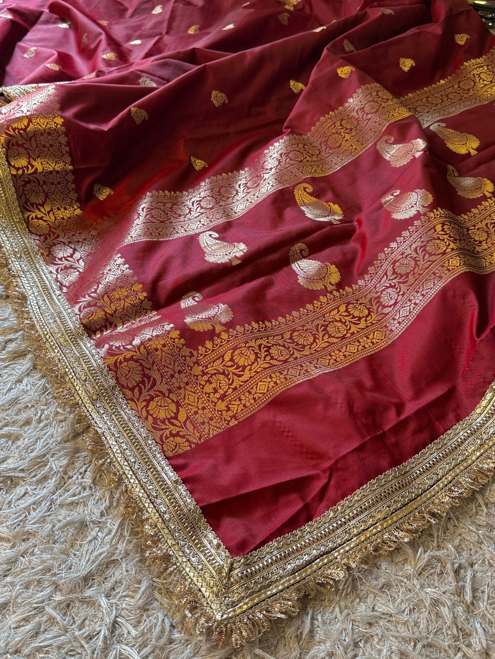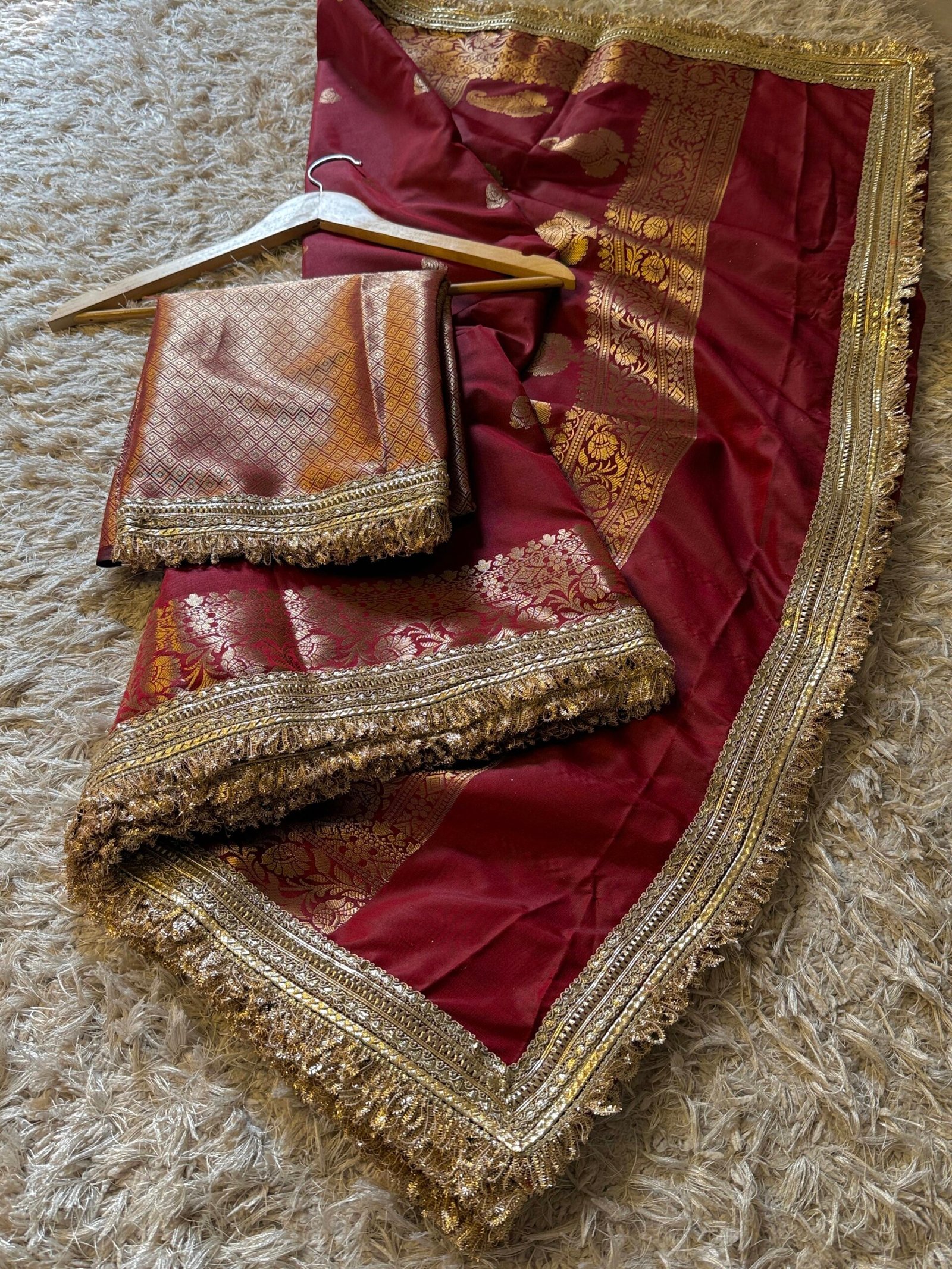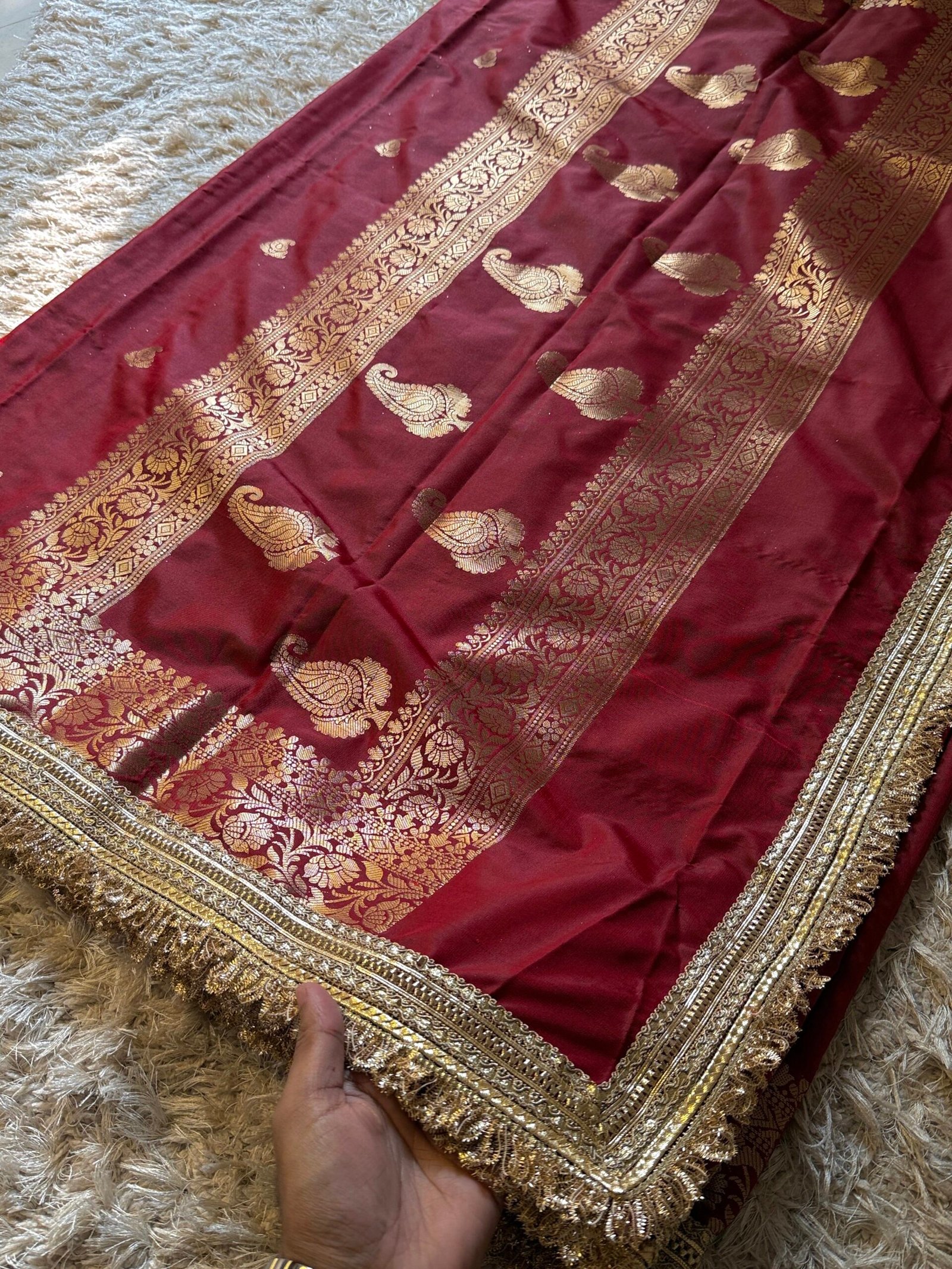 Gotapatti – embellished with lace border attached by hand, 3-4 inches laces border