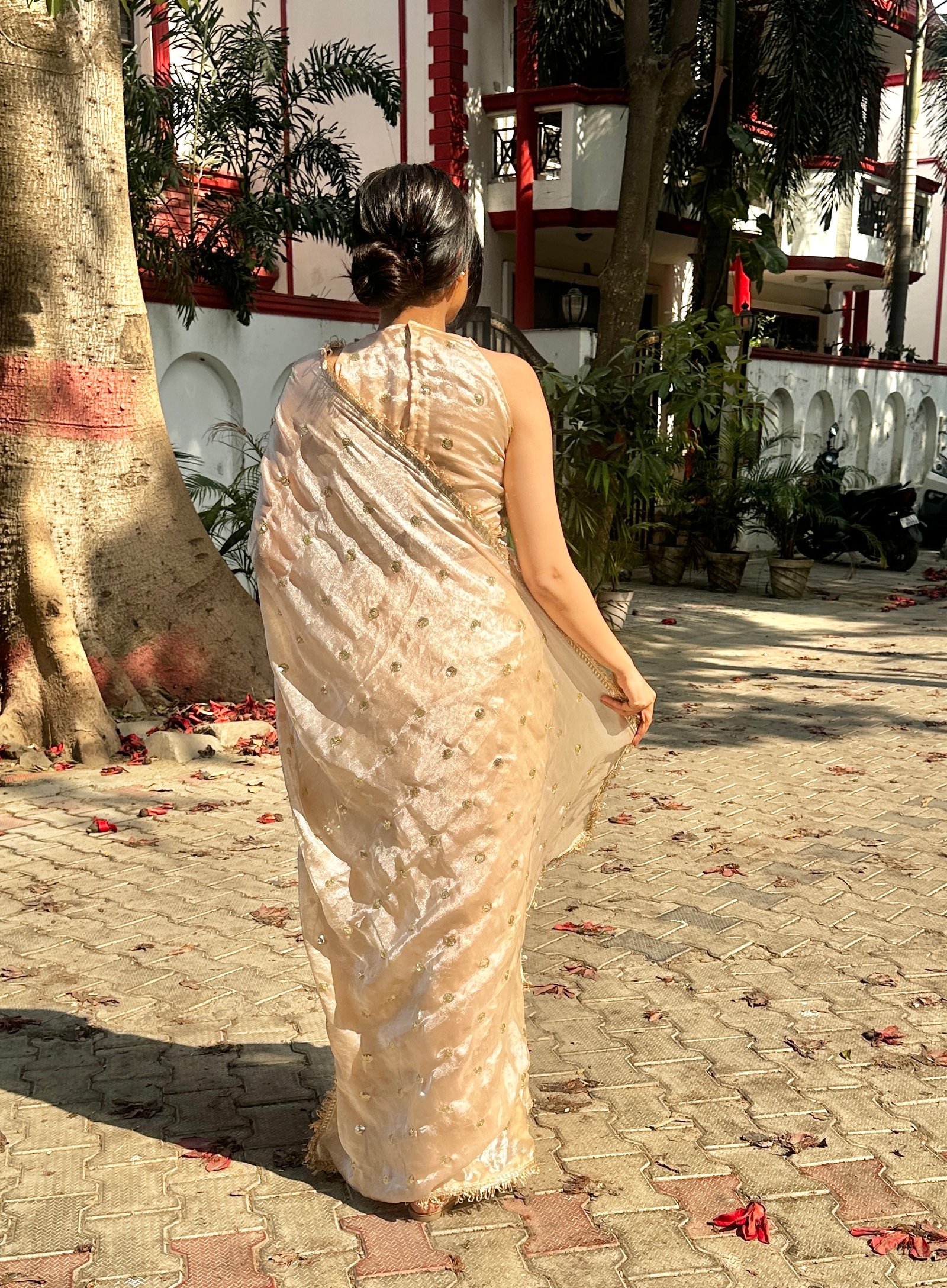 Champagne Tissue silk saree