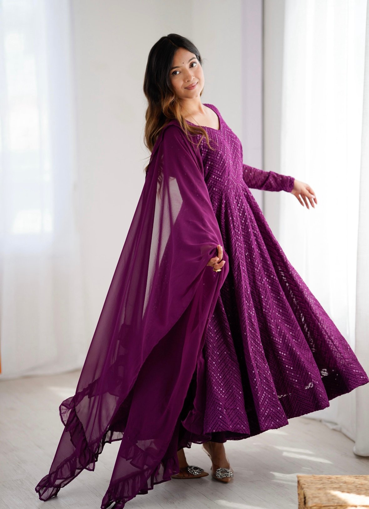 Dark jamun color anarkali