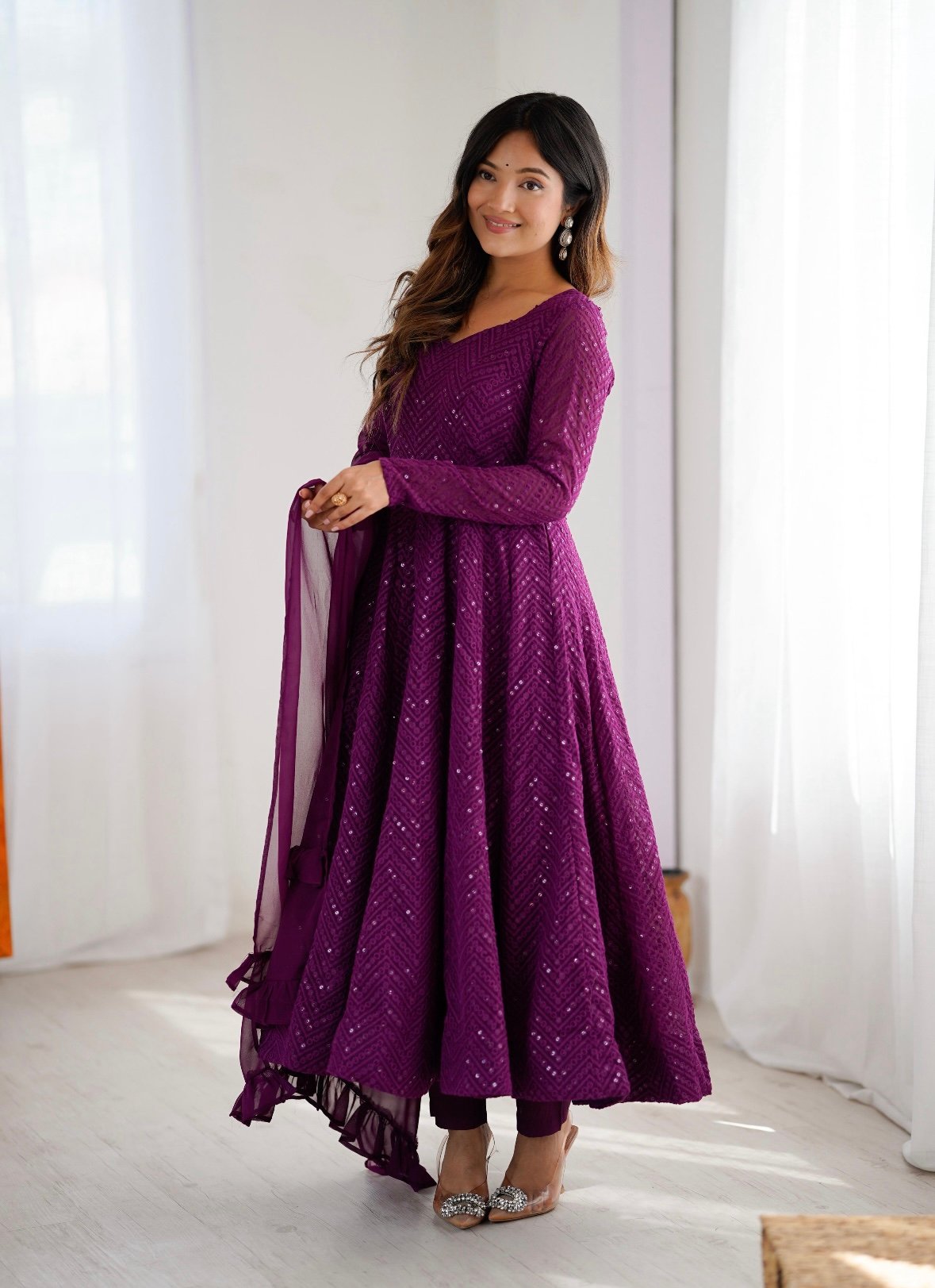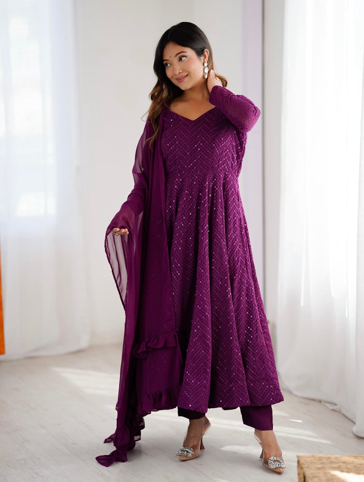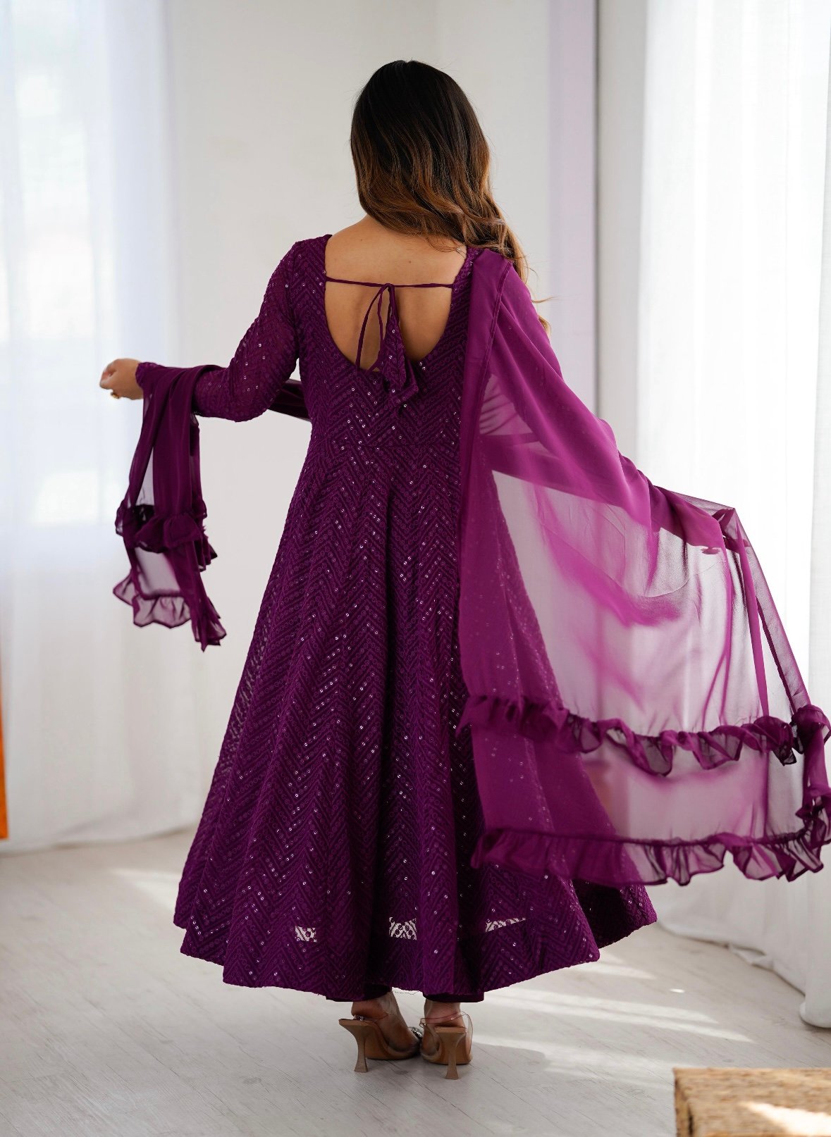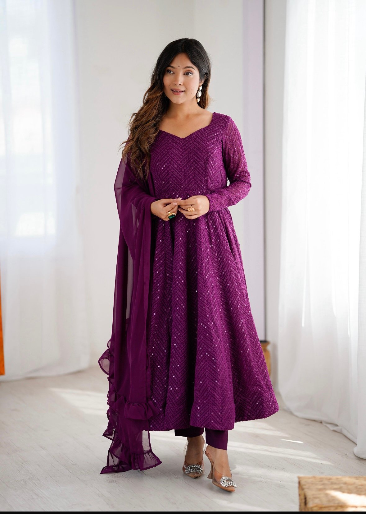 Launching this timeless and classic lukhnowi Georgette fabric Anarkali suit set for the upcoming festivities and wedding season *